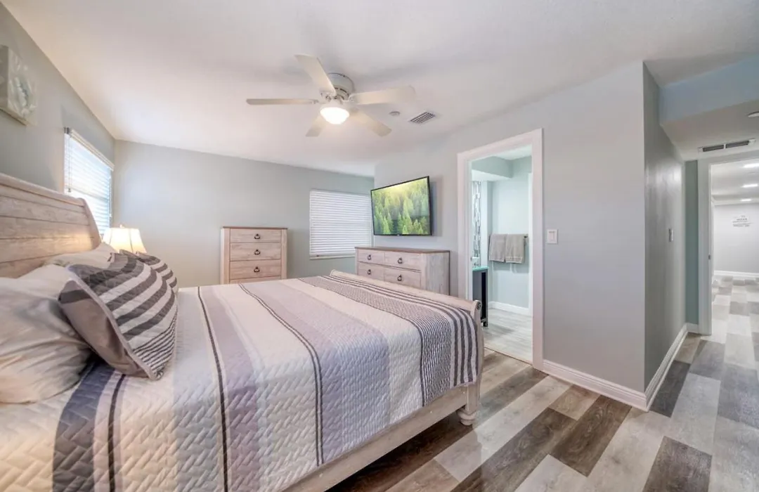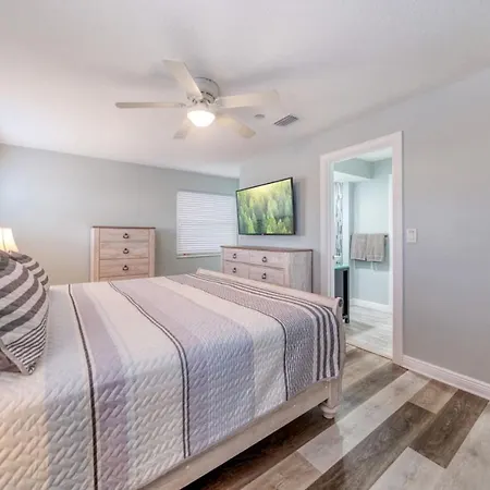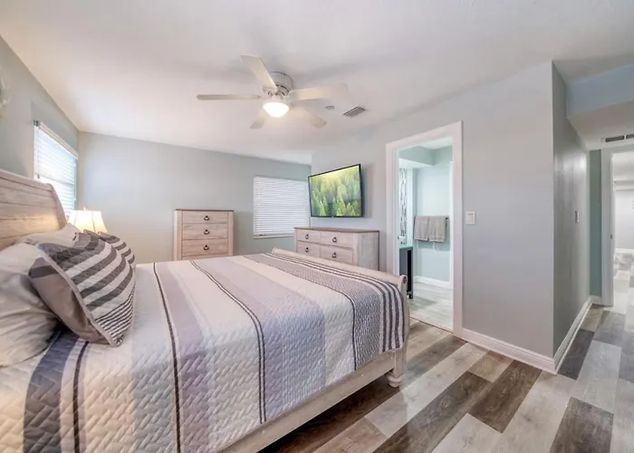 Die Villa bietet eine Essecke und einen Essbereich im Freien mit einer Minibar und Ausstattung zur Kaffee- & Teezubereitung. Es gibt auch einen Kühlschrank, einen Herd und Küchenutensilien, damit Sie sich Ihr eigenes Essen zubereiten können. Verbringen Sie einen schönen Abend in den nächstgelegenen Restaurants DJs Clam Shack Indian Shores und Aloha To Go, die in nur 7 Gehminuten Entfernung von dieser Unterkunft ist. Die Bushaltestelle 3202 Gulf Boulevard & 198th Avenue West befindet sich in der Nähe zur Unterkunft und bietet alternative Transportmöglichkeiten in der Umgebung. Ein Jacuzzi sorgen für ultimative Entspannung.